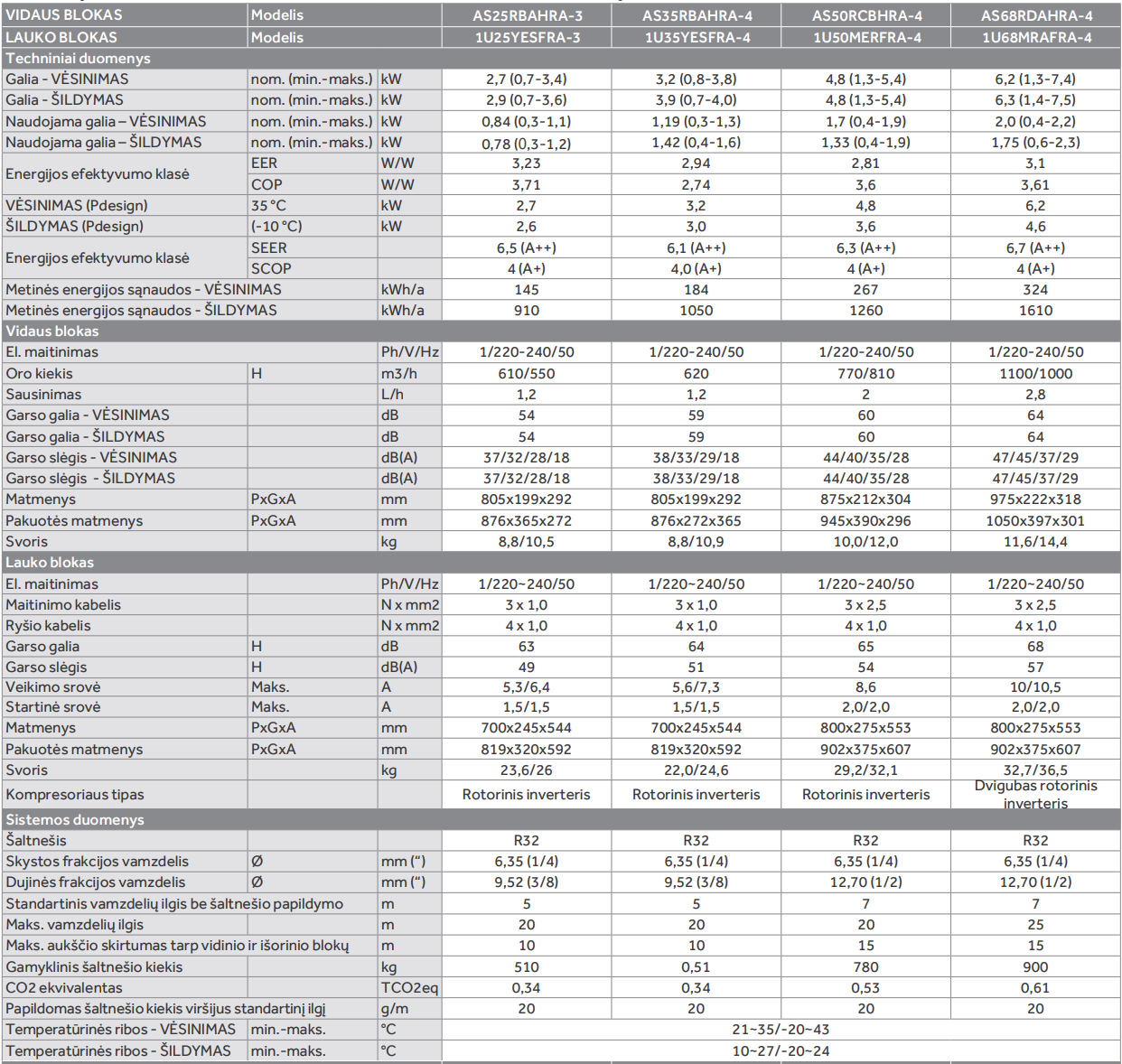 - Šaltnešis: R32 (užpildymas: 0,9 kg, TCO2eq: 0,61)