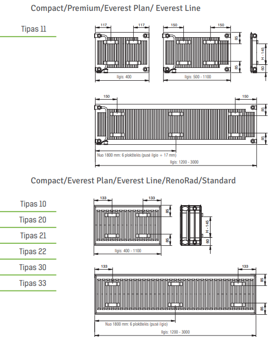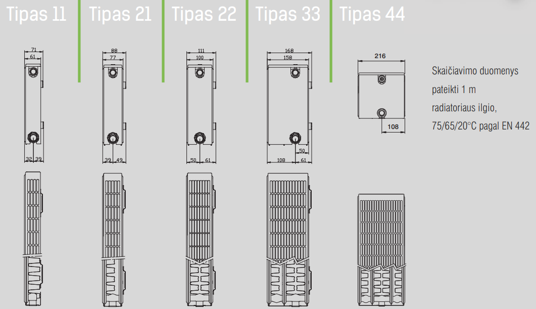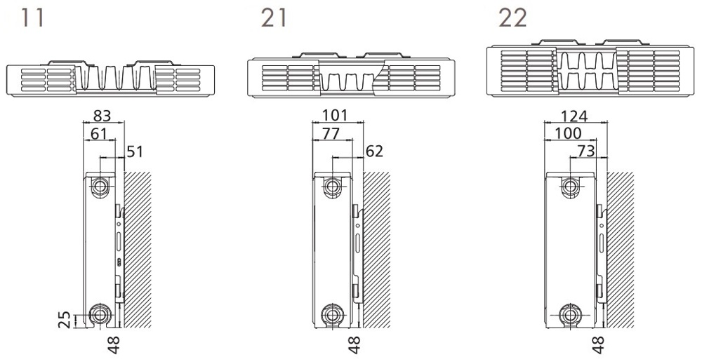 Visų tipų radiatoriai nugarinėje pusėje turi tvirtinimo plokšteles.