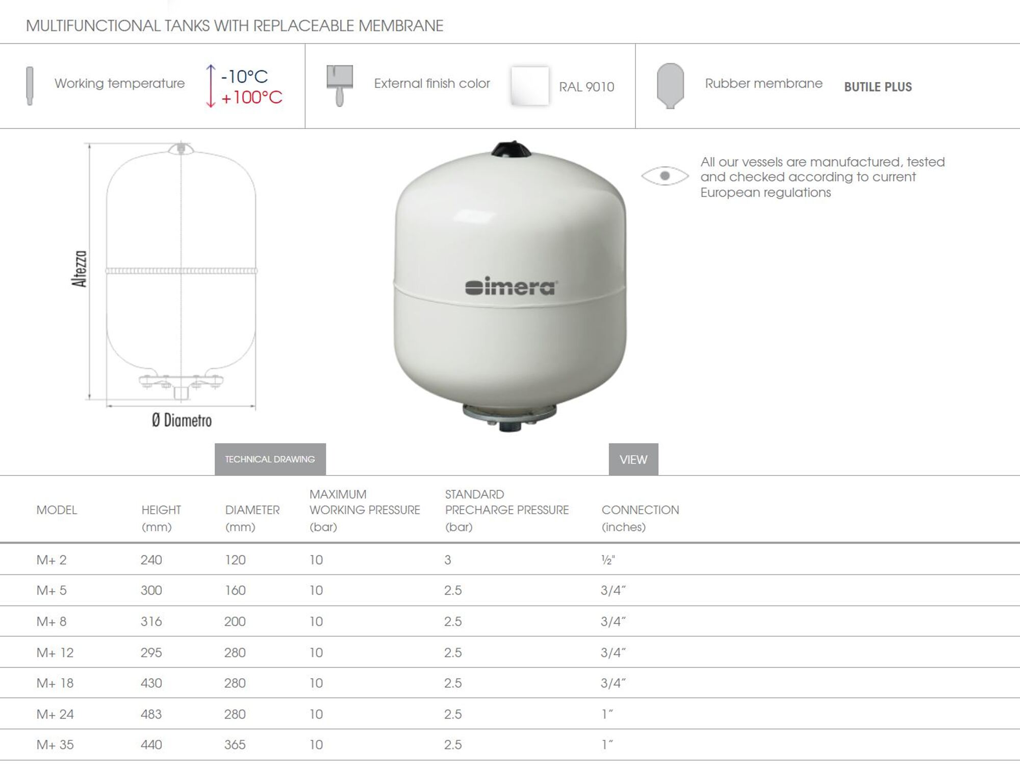 Išsiplėtimo indas šalto ir karšto vandens sistemoms Imera M PLUS 8, universalus 8l