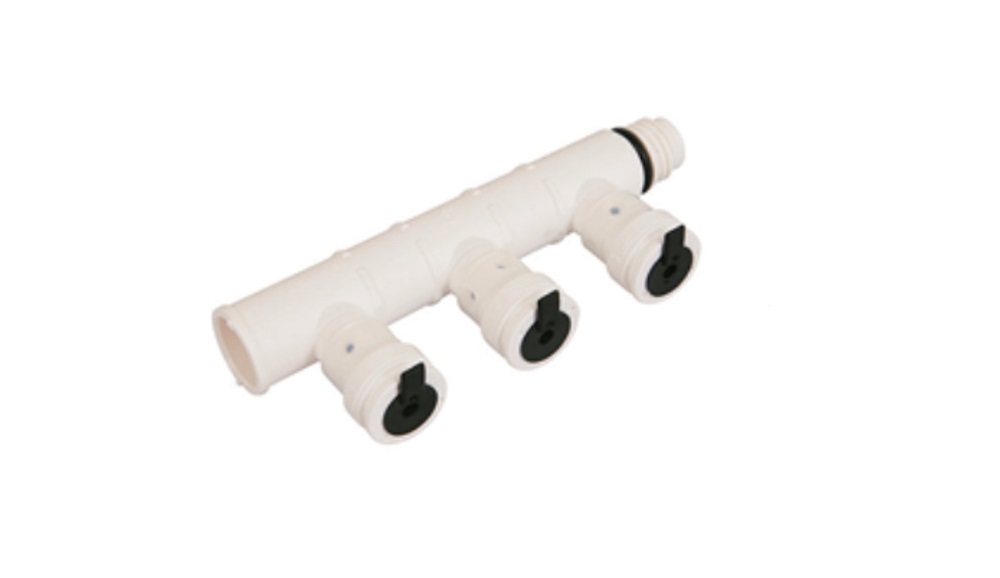 Patikimas PVDF kolektorius su greito jungimo jungtimis Pe-Xc/Al/Pe-Xc d16×16×16 vamzdžiams – lengvas montavimas, ilgaamžiškumas ir efektyvus vandens srautas.
