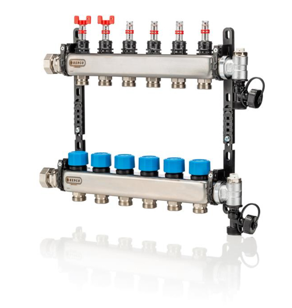 Nerūdijančio plieno apvalus grindinio šildymo kolektorius Henco su srauto matuokliu – 6 žiedų (O-1)