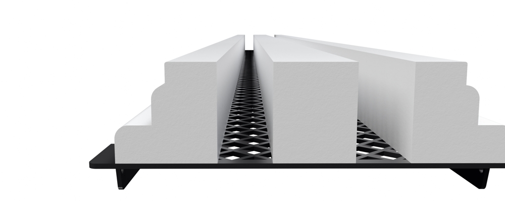 Berėmis gipsinis dviejų plyšių difuzorius Ventmann LINE, 1.25 m ilgio, su 12 mm pločio plyšiais. Tinkamas oro tiekimui ir ištraukimui, glaistomas ir dažomas, sukuriantis minimalistinį, paslėptą vėdinimo sprendimą.